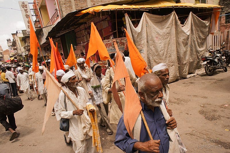 The Ashadi Wari or the Pandharpur Wari is currently underway in Maharashtra, where the Warkaris, devotees of Vithoba, undertake the journey to Pandharpur, the abode of Vithoba, an avatara of Vishnu, by foot. A joyous celebration where Hindus join together cutting across all castes, walking by foot, singing kirtanas.